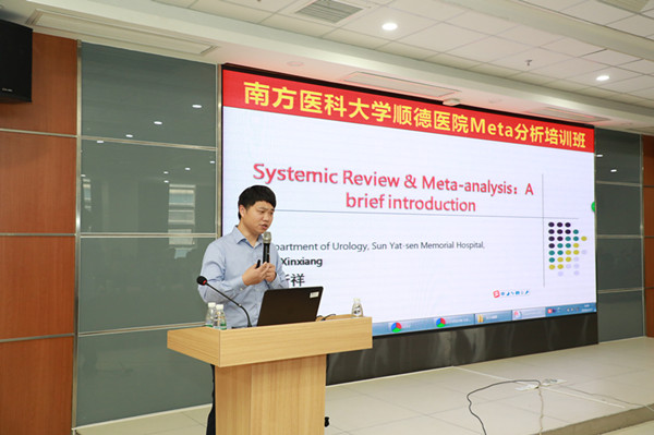 ??????? 為營造醫(yī)院科研學術氛圍,激發(fā)醫(yī)護人員的科研積極性,提高臨床研究設計的質(zhì)量和發(fā)表高水平科研論文的能力,3月17-18日,我院邀請中山大學孫逸仙紀念醫(yī)院范新祥博士來院授課,成功舉辦首屆Meta分析培訓班,劇永樂副院長、科教科林勁松主任出席了培訓班,170多名科研人員參加培訓。