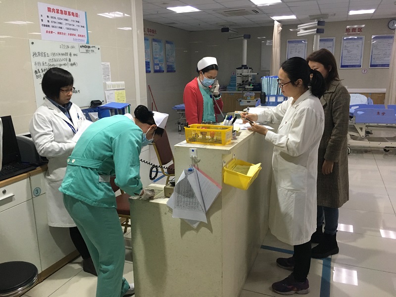 本次查房針對(duì)危急重癥急救綠色通道流程實(shí)施情況、節(jié)日期間值班人員的配備、搶救設(shè)備是否處于備用狀態(tài)、科內(nèi)危重病人的管理、各類應(yīng)急預(yù)案、重大安全隱患等問題進(jìn)行排查。檢查人員分成四組分別到各臨床科室進(jìn)行巡查,其中危急重癥急救綠色通道流程實(shí)施情況采取現(xiàn)場(chǎng)演練的形式,以患者的身份真實(shí)體驗(yàn)整個(gè)診治流程: