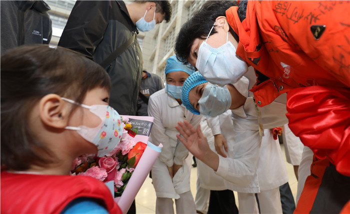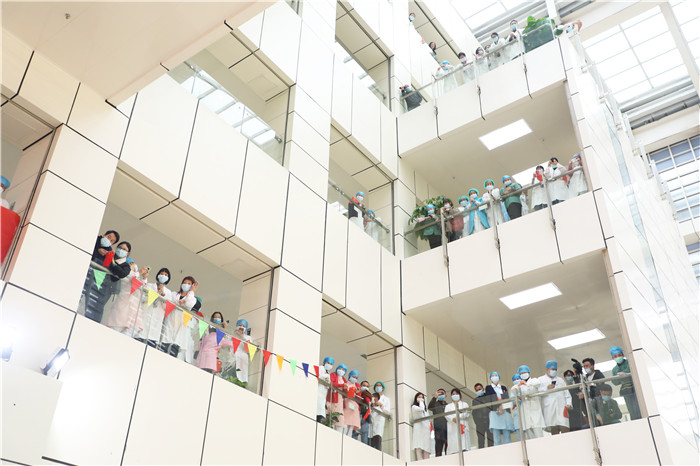 3月26日,在經(jīng)歷了一個(gè)多月的奮戰(zhàn)后,這60名援鄂“醫(yī)護(hù)軍團(tuán)”平安歸來,并進(jìn)入14天的休整期。4月6日,勇士們順利度過14天的健康觀察期,結(jié)束集中休整。至此,我院派出的兩批共63名援鄂“醫(yī)護(hù)軍團(tuán)”以零感染、零掉隊(duì)、零心理問題的驕人成績(jī)交出了一份滿意的答卷。勇士們?nèi)縿倮貧w。