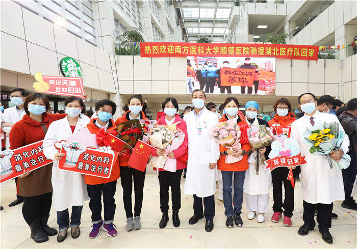 南方醫(yī)科大學(xué)寧習(xí)洲副校長在講話時(shí)表示,今天是順德醫(yī)院63位英雄正式歸隊(duì)的日子,我代表學(xué)校的全體師生向63位英雄,表示熱烈的歡迎和崇高的敬意。經(jīng)此一役,我們更能體會(huì)在充滿艱難險(xiǎn)阻、生死存亡的時(shí)刻,我們是一個(gè)不屈的民族,有奮斗、犧牲、奉獻(xiàn)精神的一個(gè)偉大民族。你們身負(fù)青囊、劍指遠(yuǎn)方,用逆行的身影、用自己的實(shí)際行動(dòng)帶給無數(shù)人南醫(yī)大學(xué)子溫暖和希望……