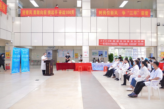 活動(dòng)開始,我院胡允兆副院長(zhǎng)在致辭時(shí)表示,腫瘤是危及國(guó)民健康的頭號(hào)殺手之一,如何提高老百姓腫瘤學(xué)的科普知識(shí)和腫瘤防治意識(shí),提高腫瘤早發(fā)現(xiàn)、早治療的效果,是腫瘤醫(yī)療界致力解決的問(wèn)題。醫(yī)院腫瘤科在各屆負(fù)責(zé)人的帶領(lǐng)下,在醫(yī)療、科研、教學(xué)方面不斷探索進(jìn)取,為順德老百姓提供規(guī)范的腫瘤治療方案。中國(guó)腫瘤學(xué)大會(huì)作為國(guó)內(nèi)權(quán)威的腫瘤學(xué)會(huì)議,此次萬(wàn)人科普活動(dòng)(順德站)選擇了南方醫(yī)科大學(xué)順德醫(yī)院,是對(duì)我院腫瘤專業(yè)水平的一種認(rèn)可與鼓勵(lì),希望在各位廣東省腫瘤學(xué)專家及我院專家團(tuán)隊(duì)的共同合作下,本次科普義診活動(dòng)能夠順利開展,并預(yù)祝2020年中國(guó)腫瘤學(xué)大會(huì)取得圓滿的成功。