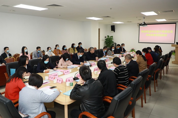 會上,杜慶鋒處長介紹了本次評估工作的目的,沈潔院長代表醫(yī)院歡迎檢查組的到來,并介紹了醫(yī)院今年的工作重點(diǎn)。胡允兆副院長就醫(yī)療工作情況進(jìn)行簡短匯報,一年來,醫(yī)院高度重視醫(yī)療技術(shù)臨床應(yīng)用管理,修訂及完善醫(yī)療技術(shù)臨床應(yīng)用相關(guān)管理制度,成立醫(yī)療技術(shù)臨床應(yīng)用管理委員會,履行醫(yī)療技術(shù)臨床應(yīng)用監(jiān)管職責(zé);加強(qiáng)醫(yī)療技術(shù)督導(dǎo)檢查、培訓(xùn)考核,定期開展醫(yī)療技術(shù)專項(xiàng)督導(dǎo)檢查,發(fā)現(xiàn)問題落實(shí)整改;加強(qiáng)手術(shù)分級管理,加強(qiáng)手術(shù)安全管理;完善臨床技術(shù)操作規(guī)范和診療常規(guī);利用信息化建立個人技術(shù)檔案庫。在2019年醫(yī)療質(zhì)量評估“回頭看”工作中,根據(jù)2019年醫(yī)療質(zhì)量巡查中發(fā)現(xiàn)的問題,建立整改臺賬,逐條進(jìn)行整改。在新冠肺炎疫情感染防控工作方面,成立新冠肺炎疫情防控工作領(lǐng)導(dǎo)小組,細(xì)化防控流程、指引,落實(shí)醫(yī)院出入口防控和預(yù)檢分診,預(yù)約就診,開展互聯(lián)網(wǎng)醫(yī)療咨詢服務(wù),加強(qiáng)多重耐藥菌管理,嚴(yán)格病房管理,制定各類醫(yī)務(wù)人員防護(hù)指引,落實(shí)實(shí)驗(yàn)室生物安全、落實(shí)職業(yè)防護(hù)和醫(yī)療廢物處理等,做到疫情防控常抓不懈。