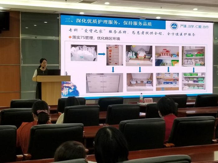 麥兆章副院長首先肯定了我院優(yōu)質(zhì)護(hù)理服務(wù)工作取得的成績,在三甲評審中得到了患者的好評及評審專家的表揚(yáng)。他同時(shí)提出幾點(diǎn)期望和要求:一是用心服務(wù),發(fā)掘服務(wù)內(nèi)涵,發(fā)動一線員工積極發(fā)現(xiàn)問題、解決問題,結(jié)合??铺攸c(diǎn),根據(jù)患者需求提供優(yōu)質(zhì)護(hù)理服務(wù);二是為患者創(chuàng)造美好回憶,提升患者就醫(yī)感受及滿意度;三是凝練護(hù)理文化,樹立??品?wù)品牌。