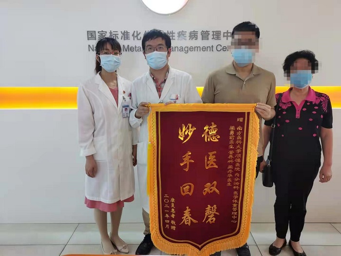 “看到兒子減重成功,多年的脂肪肝消失了,壓在心頭的大石也終于放下了”。阿陸的媽媽對(duì)這次減重治療效果很滿意,也深深地感受到,飲食和運(yùn)動(dòng)對(duì)改善代謝性疾病如此重要。為了表達(dá)謝意,阿陸和媽媽還專門給內(nèi)分泌與代謝科、營(yíng)養(yǎng)科送來(lái)了感謝信和錦旗。
