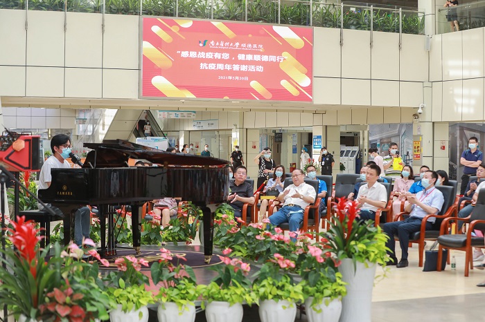 不忘來時路,方知向前行。5月20日下午,在南方醫(yī)科大學(xué)順德醫(yī)院門診大廳,一個具有特殊意義的音樂交流會正在進行?,F(xiàn)場,曾在抗疫期間向醫(yī)院捐資贈物的企業(yè)代表和個人、曾參與抗擊新冠肺炎疫情的醫(yī)護代表合計近50人以音樂為媒介,進行了抗疫經(jīng)歷交流。