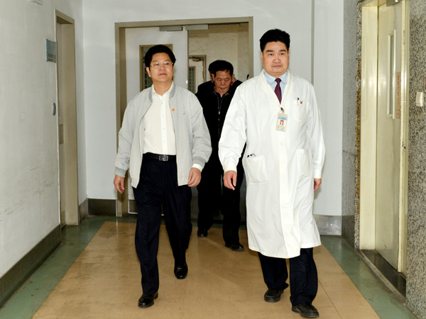 劉志庚副省長(zhǎng)(左)對(duì)我院救治工作給予肯定,并提出要求。